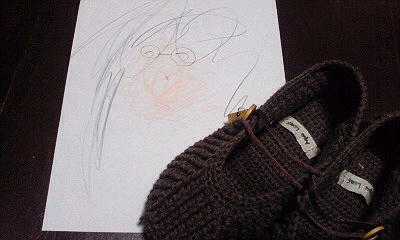 姉が作った部屋履き&甥っ子が描いた俺